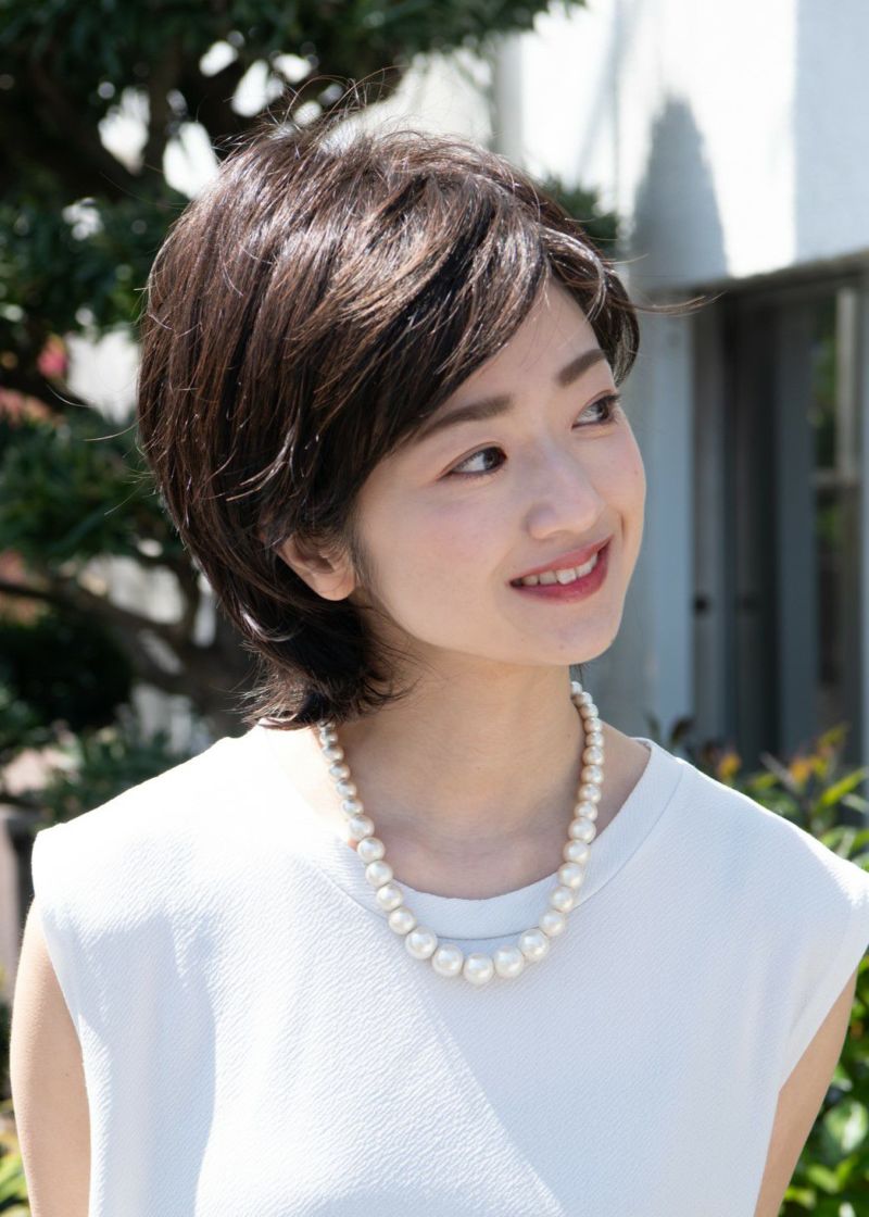 世代をこえ愛されるウルフ外ハネショート。後頭部から襟足にかけくびれさせ、襟足は長めに残し動きをプラス。全体的に空気感を出すためにカールをプラス。手でもみ込むようにクシュっとゆるいカール感を出したら華やかに。ボリュームを抑えれば落ち着いたカジュアルな印象に。後頭部の盛髪にこだわり、つむじや分け目を作らず、前髪~頭頂部~後頭部は自然に流し、根元にはあえて逆毛を立てるような縮れ加工を施した立体感のあるスタイル。海外で人気の仕様。前髪は斜めにカット、左右両方分けOK。JIS規格認定。