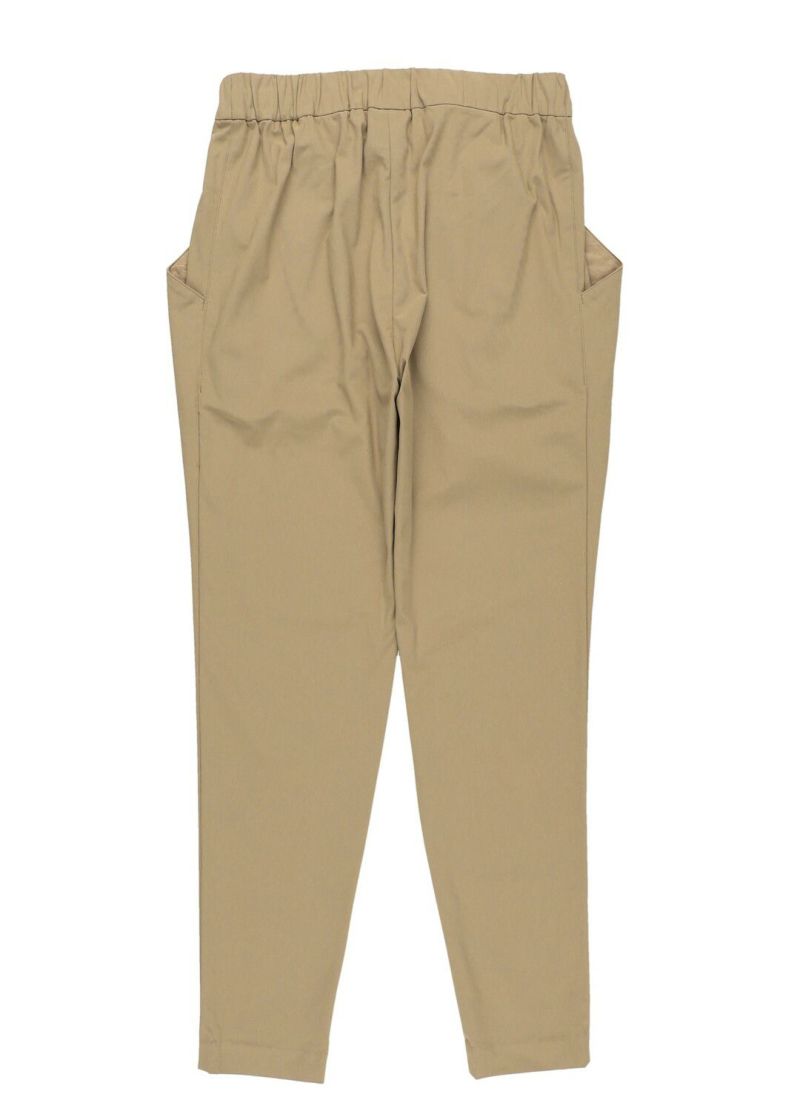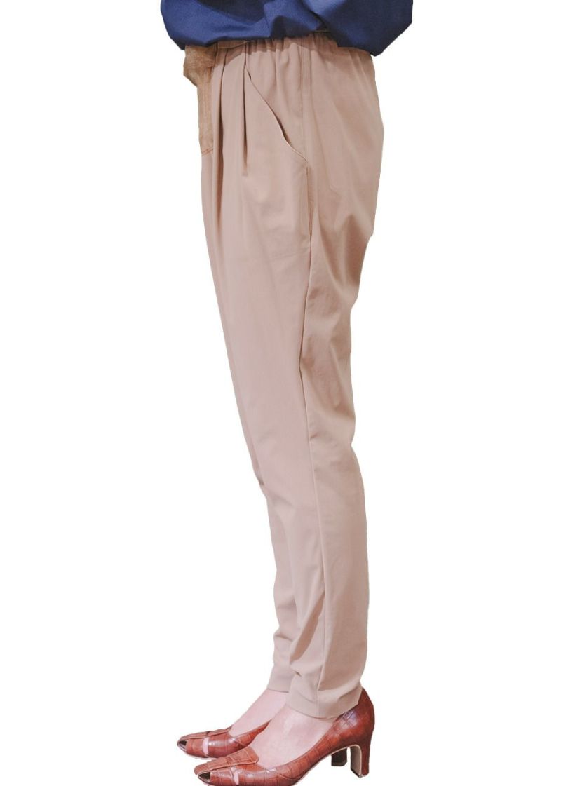 マイクロファイバーならではの柔らかな肌触りと、 繊細なタッチが生み出す上品な素材感。 抜群のストレッチ性で動きやすく、ウエストは2タックのゴム仕様。 エレガントなルックスと快適な履き心地を両立した、リラックスパンツ。