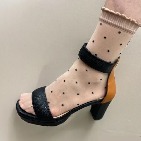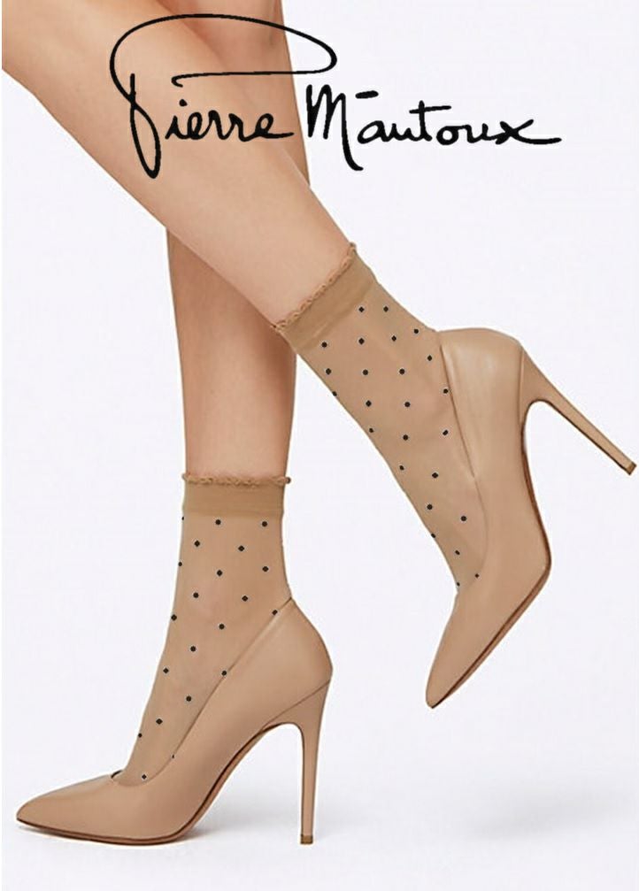 ピエールマントゥの真骨頂である滑らかな肌触りのストッキングソックス。ブラックのドットがアクセント。