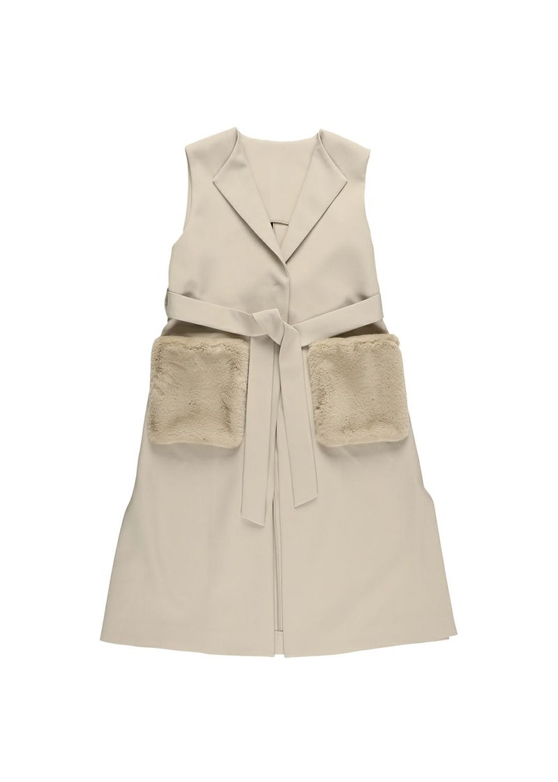 Long gilet with fur pockets
