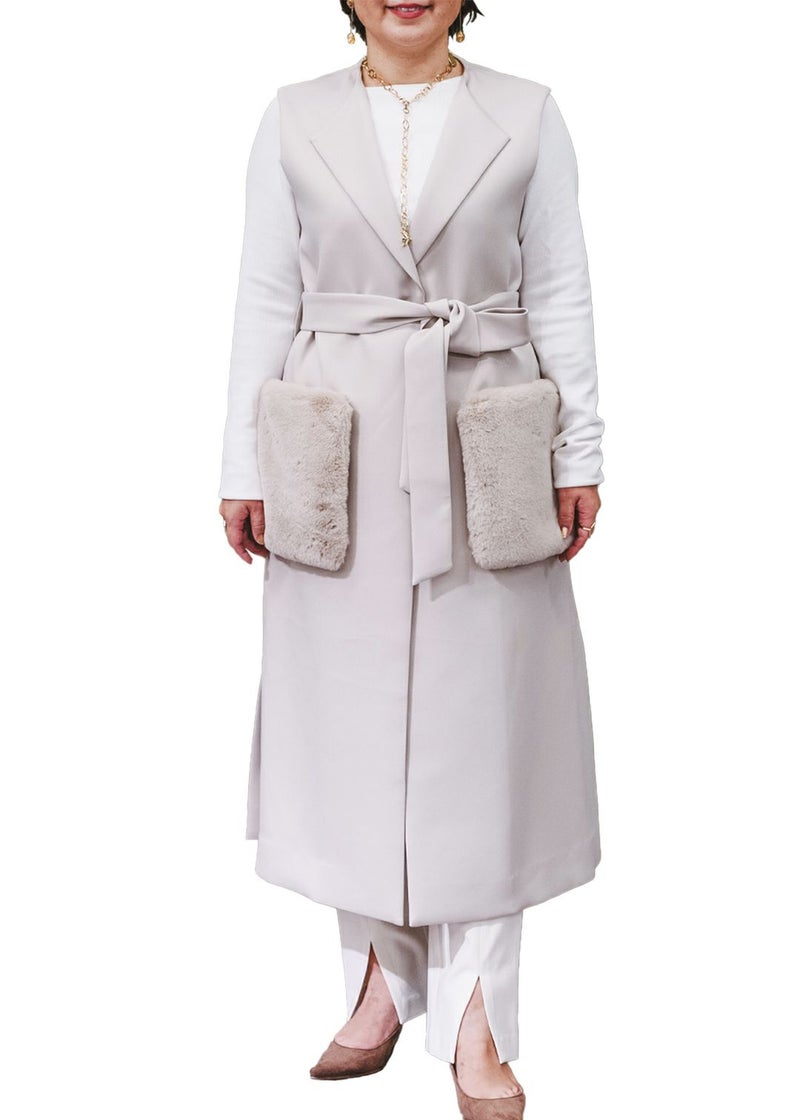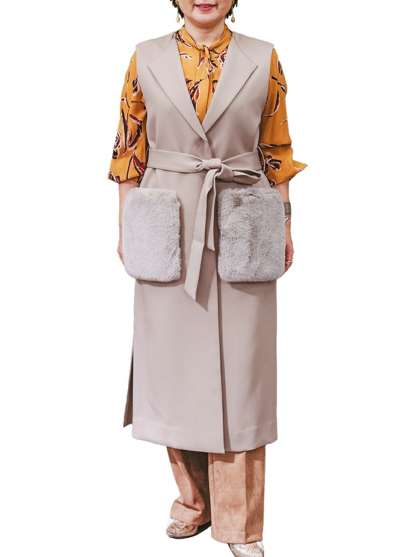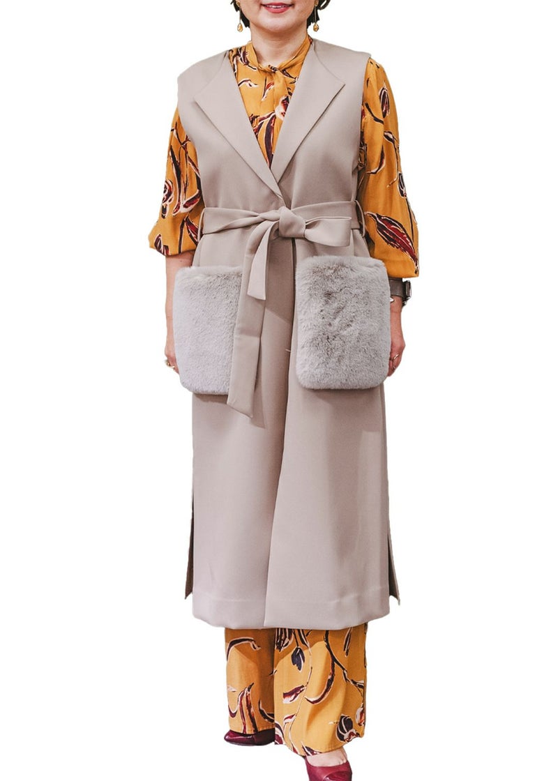 (取外し可)ファーポケット付きロングジレ