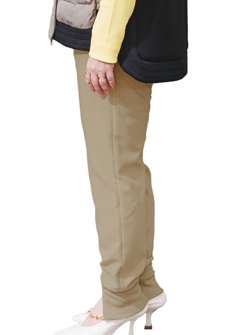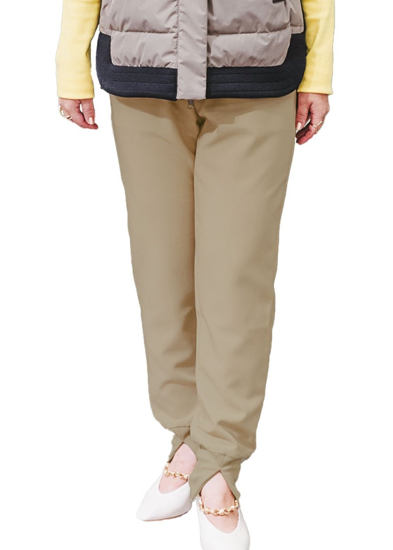 足首部分のリブニットにはスリット入りで、足元に抜け感がでます。150㎝前半の身長でも、もたつかずカッコよく履けます。