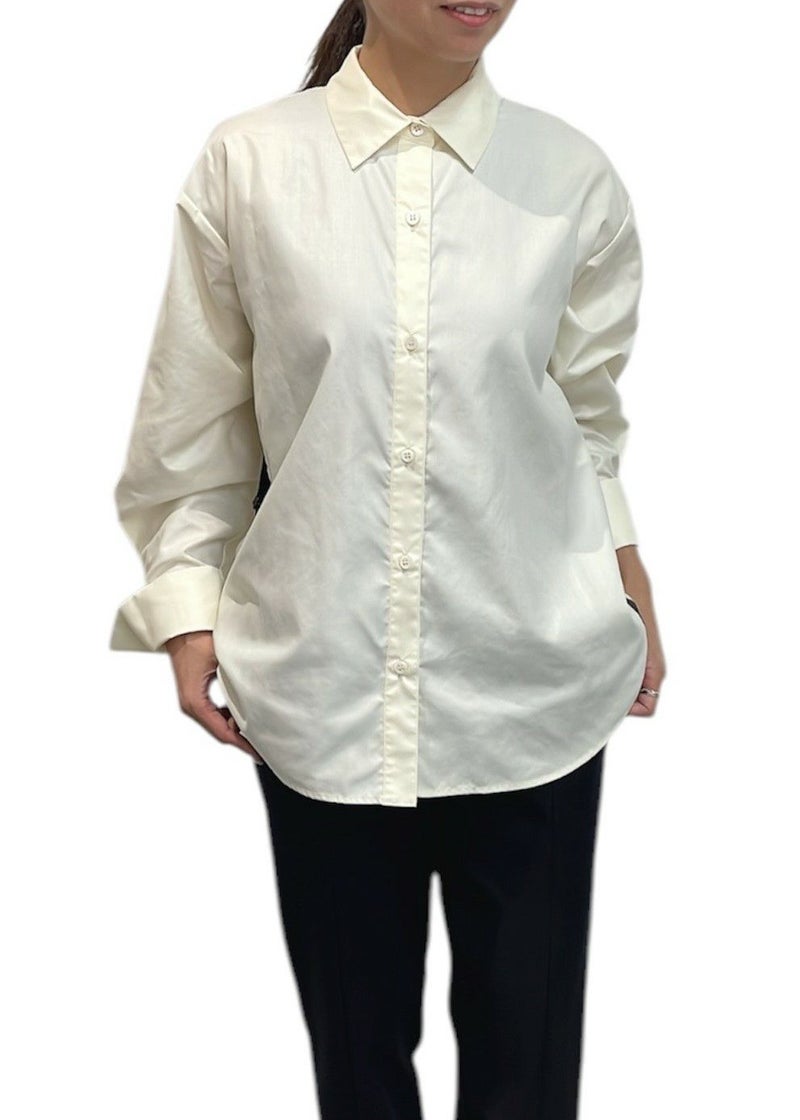 サイドのベルトでギャザリングできるので、変形のブラウスとして形を楽しめるブラウス