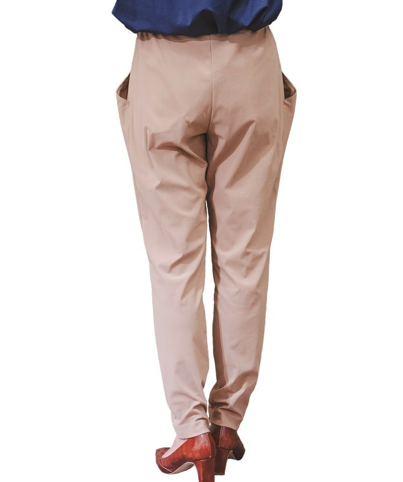 マイクロファイバーならではの柔らかな肌触りと、 繊細なタッチが生み出す上品な素材感。 抜群のストレッチ性で動きやすく、ウエストは2タックのゴム仕様。 エレガントなルックスと快適な履き心地を両立した、リラックスパンツ。