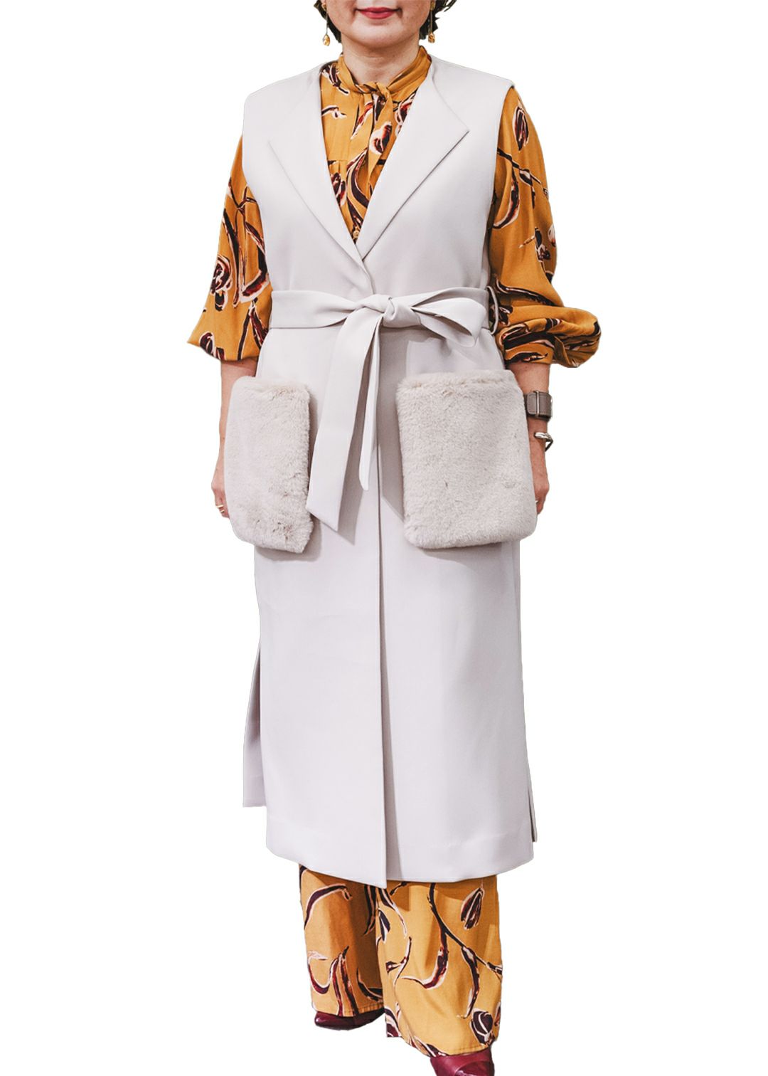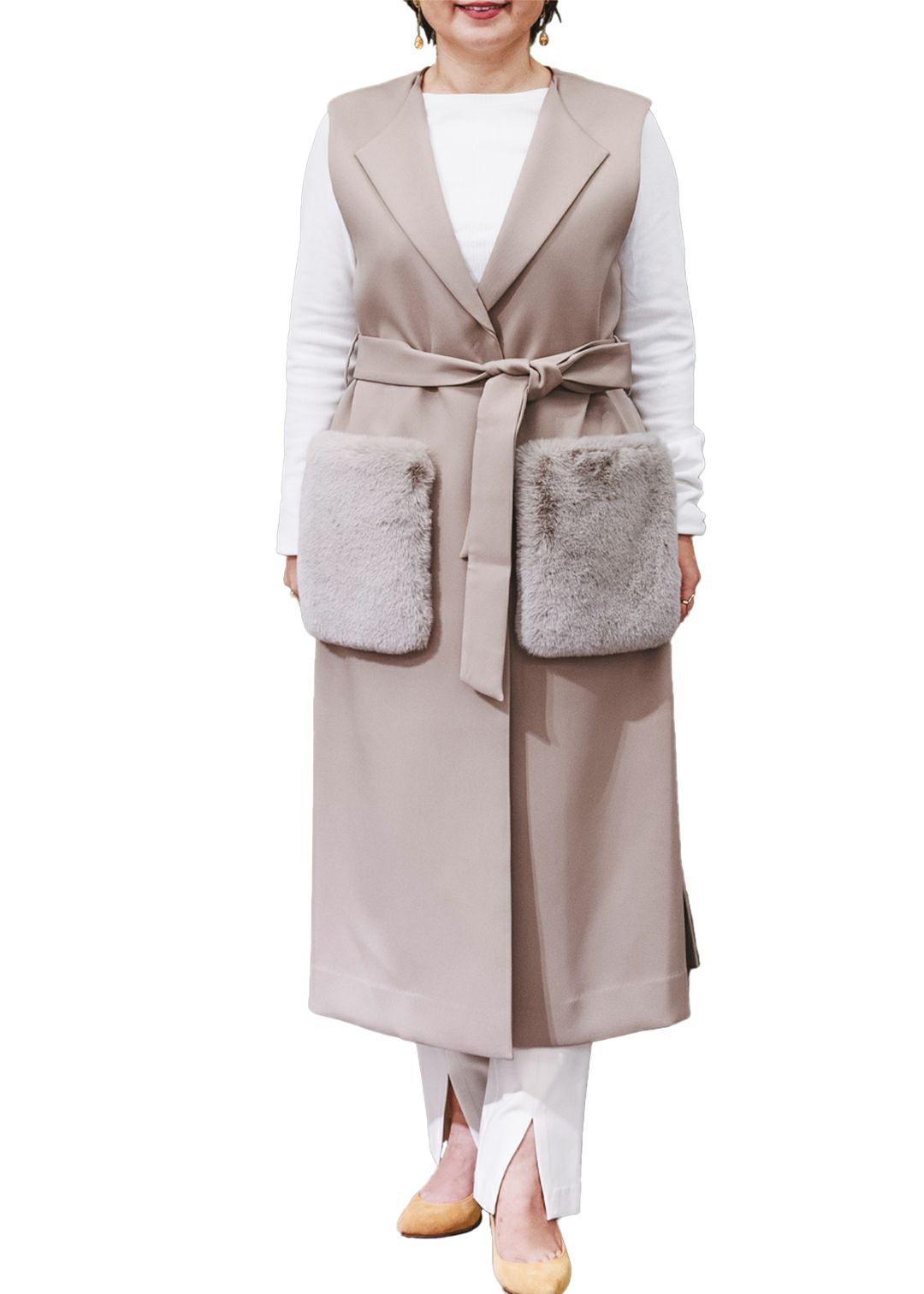Long gilet with fur pockets (取外し可)ファーポケット付きロングジレ